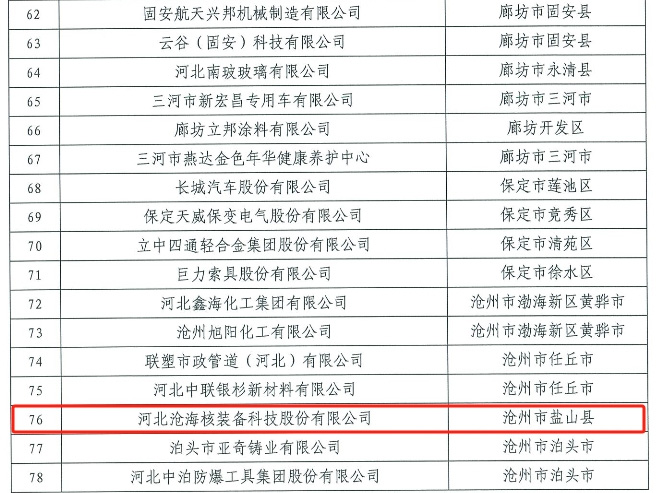 近日,河北省質(zhì)量強(qiáng)省戰(zhàn)略領(lǐng)導(dǎo)小組發(fā)布通知,河北滄海核裝備科技股份有限公司入選河北省質(zhì)量強(qiáng)省建設(shè)領(lǐng)軍企業(yè)培育名單,這也是滄海核裝獲得政府質(zhì)量獎后獲得的又一質(zhì)量建設(shè)領(lǐng)域的榮譽(yù)資質(zhì)。
